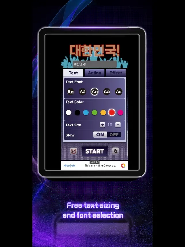 경기 중 응원을 위해 LED응원 전광판 사용하세요.콘서트를 지원하기 위해 형광글씨 잡습니다. 라이브 방송 중에 움직이는 텍스트를 사용하세요. 파티와 바에서 대화를 시작하려면 스크롤 텍스트를 사용하세요. LED 현광판
