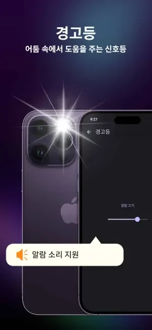 주요 정보는 모스 부호를 통해 전송될 수 있습니다. 플래시 라이트는 필요할 때나 긴급 상황에서 SOS 모스 부호를 전송할 수 있습니다. (사용자 정의 손전등 또는 화면 플래시 색상)