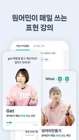 영어로 말하기 위한 모든 것이 준비되어 있습니다. 영어 표현 강의, 발음, 단어, 그리고 다양한 상황 속 말하는 연습을 할 수 있는 실전 회화 트레이닝까지.