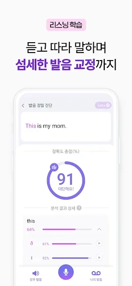 📍 [리스닝 학습]: 영어 듣기, 영어 말하기로 발음과 억양을 섬세하게 체크할 수 있어요.