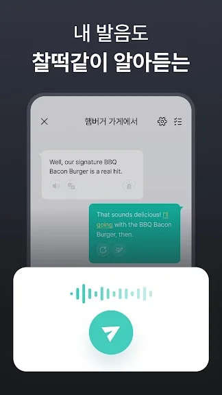 • 공공장소에서도 끊기지 않고 영어회화를 할 수 있도록 채팅 입력이 가능해요.