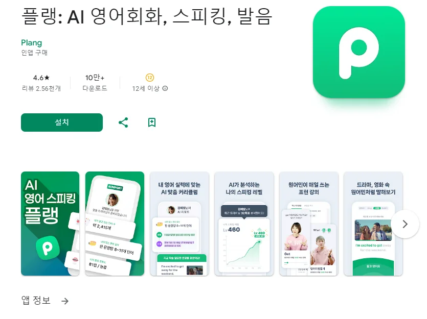이 어플은 구글플레이스토어에서 "영어 스피킹 잘하는 법"로 검색했을때 3번째로 나오는 어플입니다. 아래는 플랭: AI 영어회화, 스피킹, 발음 어플에 대한 자세한 설명이니 참고하세요.