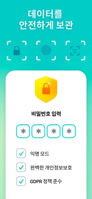 - 핀코드나 face-ID, 지문으로 데이터를 계속해서 안전하게 관리하세요.