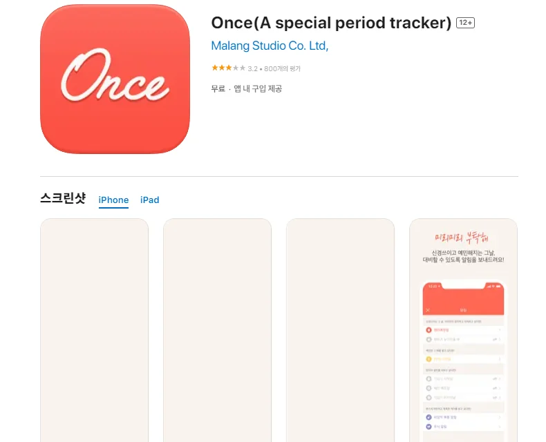 아래는 아이폰 Once(A special period tracker) 어플에 대한 자세한 설명입니다. 참고하세요.
