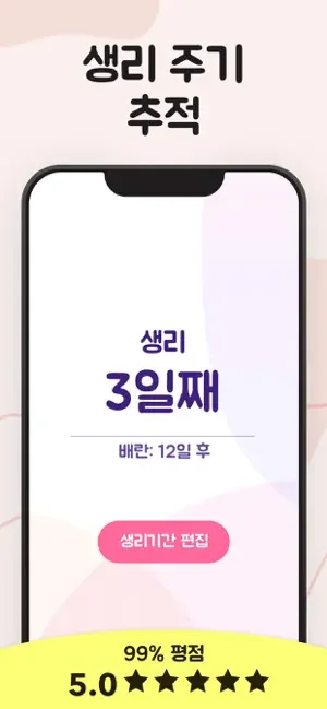 이 우아한 앱은 여성들이 생리 주기, 배란기, 임신 가능성이 높은(가임기) 예정일을 예측할 수 있도록 도와줍니다. 그래서 임신과 피임을 걱정하는 여성들에게 훌륭한 앱입니다. 또한, 생리 주기가 얼마나 규칙적인지 또는 불규칙적인지도 확인하실 수 있습니다.