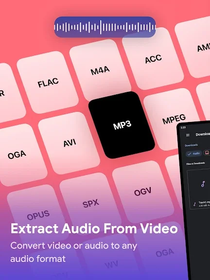 지금 다운로드하고 몇 번의 탭만으로 비디오를 다양한 오디오 파일로 변환하세요. 음악 애호가, 오디오북 팬 및 휴대폰의 사운드 설정을 사용자 정의하려는 모든 사람에게 적합합니다.
