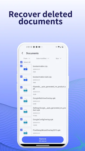 다른 파일 유형 복구: 사진과 비디오 외에도 이 어플리케이션은 음성 파일, 문서, 압축 파일 및 APK 파일의 복구를 지원합니다.