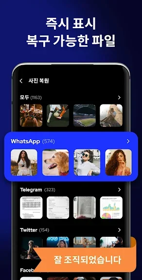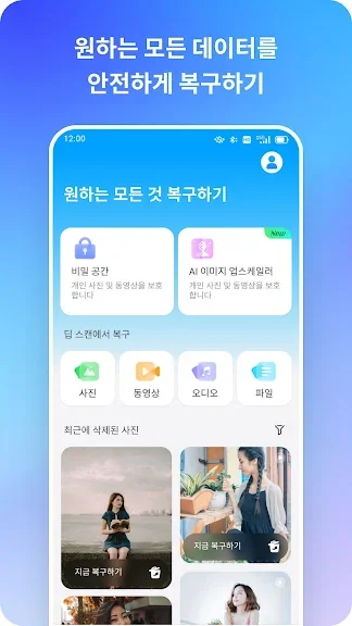 사진 및 비디오 복구: 이 어플리케이션을 사용하여 모바일 장치에서 삭제된 모든 사진과 비디오를 빠르고 효과적으로 복구할 수 있습니다.
