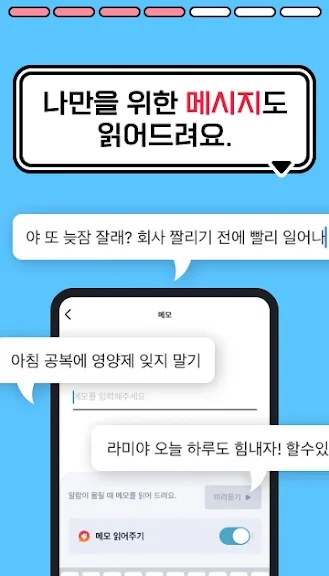 ■ 메모 읽어주기 - 알람 설정 시 작성한 메모를 알람 해제 전까지 매분 읽어줍니다.