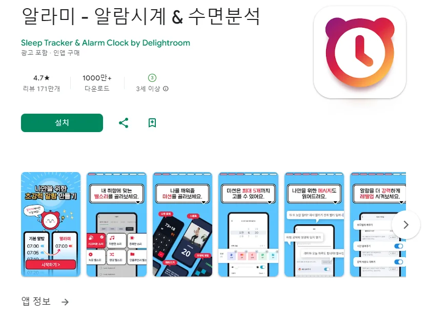 아래는 알라미 - 알람시계 & 수면분석 어플에 대한 스크린샷 정보입니다.