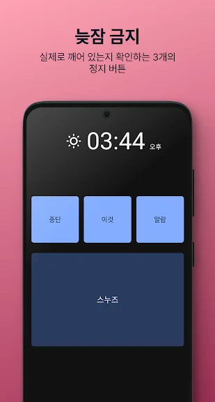 ♪ 매우 큰 다시 알림 버튼을 사용하여 실수로 '해제'를 누르지 못하도록 방지합니다.