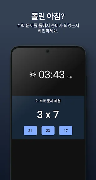 ♪ 알람을 다시 알리거나 해제하기 위해 연산 문제를 푸는 방법으로 잠에서 깰 수 있습니다.