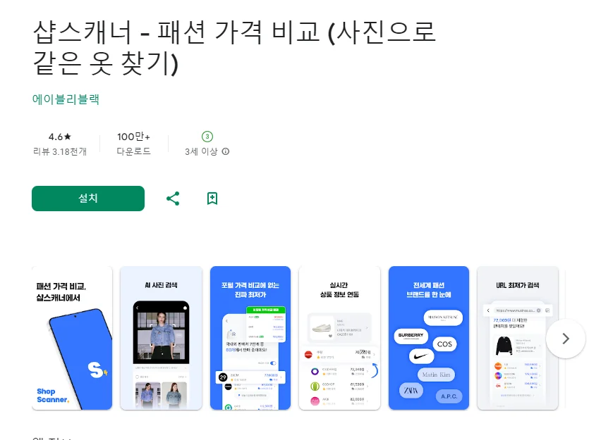 샵스캐너 - 패션 가격 비교 (사진으로 같은 옷 찾기) 어플에 대한 스크린샷 정보가 필요하시다면 아래 이미지를 참고하시기 바랍니다.