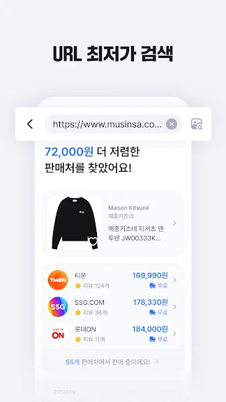 상품 URL 하나면 최저가 판매처를 찾을 수 있어요.