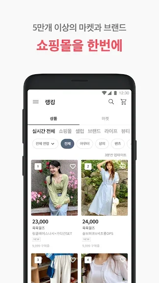 - 실시간 베스트 랭킹을 통해 인기 있는 브랜드와 상품을 볼 수 있습니다.