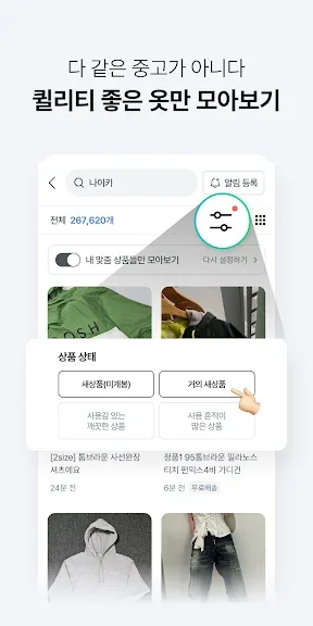 · 카테고리, 상태, 사이즈, 색상 등 친절한 검색 필터로 원하는 상품 쉽게 발견