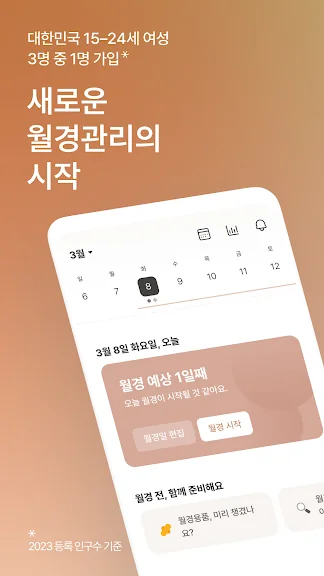 아래는 생리 달력 - 생리 주기 관리 어플에 대한 스크린샷 정보입니다.