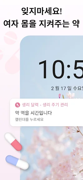 * 피임약 복용 알림 및 동기화: 피임약, 알림 설정 해두고 잊지 마세요! 생리주기 예측에도 자동으로 반영돼요.