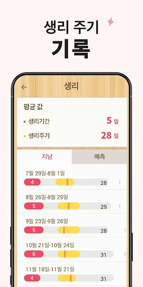 이 앱의 정확한 미리 알림을 사용하시면 향후 주기, 가임기, 배란기를 예측하는데 좋습니다.