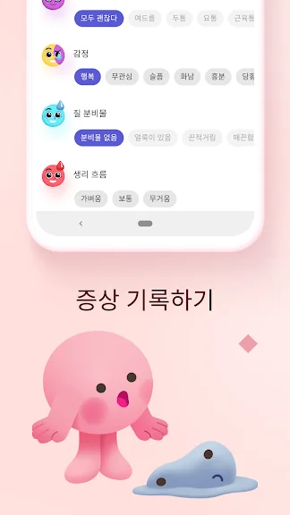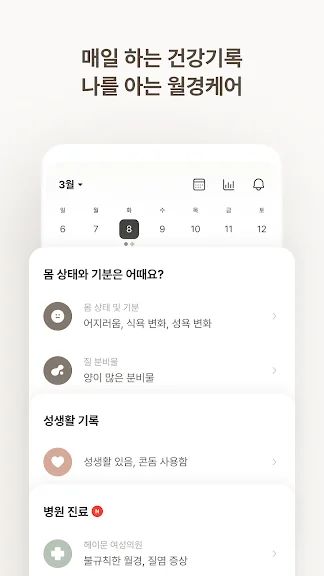매일 생리에 따른 기분과 몸상태 체크 기능