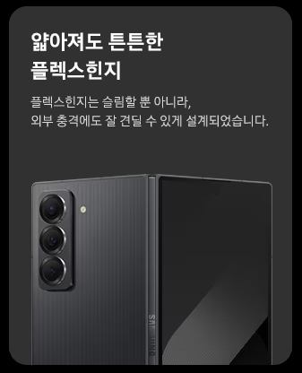 갤럭시 Z 폴드 스페셜 에디션은 두께가 10.6mm, 무게가 236g으로, 이전 모델보다 얇고 가벼워진 점이 돋보입니다. 이러한 변화는 휴대성을 높여 주머니나 가방에 넣었을 때의 부담을 줄여줍니다. 또한, 세련된 블랙 쉐도우 컬러와 직선적인 디자인은 고급스러움을 더해줍니다. 메탈과 유리 소재의 조화는 제품에 안정감과 우아함을 부여하며, 스페셜 에디션이라는 이름에 걸맞은 품격을 자아냅니다.
