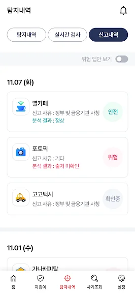 이 앱은 탐지한 악성 URL을 경찰과 한국인터넷진흥원(KISA)에 자동으로 신고하여, 다른 사람들의 피해를 막는 데도 기여합니다.