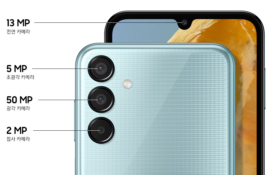 200만 화소 접사 카메라는 근거리 피사체의 세밀한 디테일을 생생하게 표현할 수 있어, 자연 속 작은 피사체나 정교한 사물을 촬영하는 데 유용합니다. 더불어, 1,300만 화소의 전면 카메라는 셀피 촬영에 적합하며, 선명한 화질과 함께 매력적인 이미지를 만들어냅니다. 이러한 카메라 구성은 일상적인 사진부터 전문적인 수준의 촬영까지 폭넓은 활용성을 제공합니다.