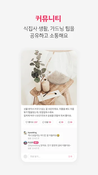 이 어플의 장점은 사용자의 편리함을 극대화하는 점입니다. 정확한 학명과 특성 정보, 병해충 대처 방법 등을 제공하며, 정원 커뮤니티에서는 가드닝 팁을 나누고 나눔장터에서 씨앗과 모종을 교환할 수도 있습니다.