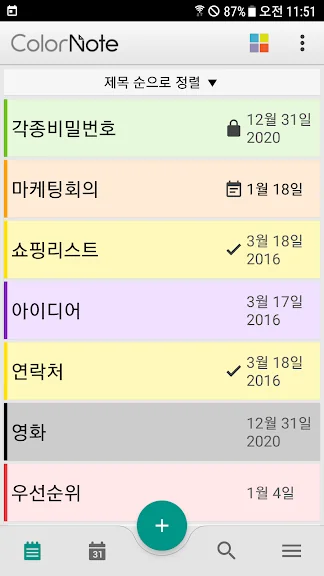 2) 컬러노트 메모장 - 노트 메모 위젯 어플 스크린샷
