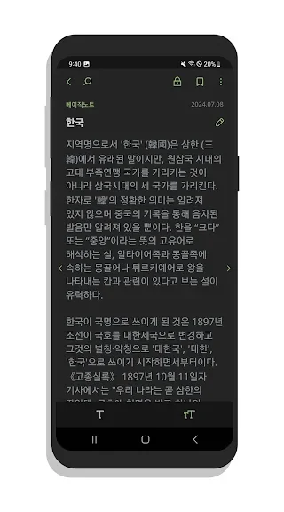 - 한글 지원 및 간단한 메모 작성 기능