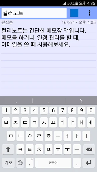 이 어플은 구글플레이스토어에서 "메모장"로 검색했을때 2번째로 나오는 어플입니다. 아래는 컬러노트 메모장 - 노트 메모 위젯 어플에 대한 자세한 설명이니 참고하세요.