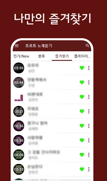 좋아하는 곡을 선택해 듣고 즐겨찾기 하세요