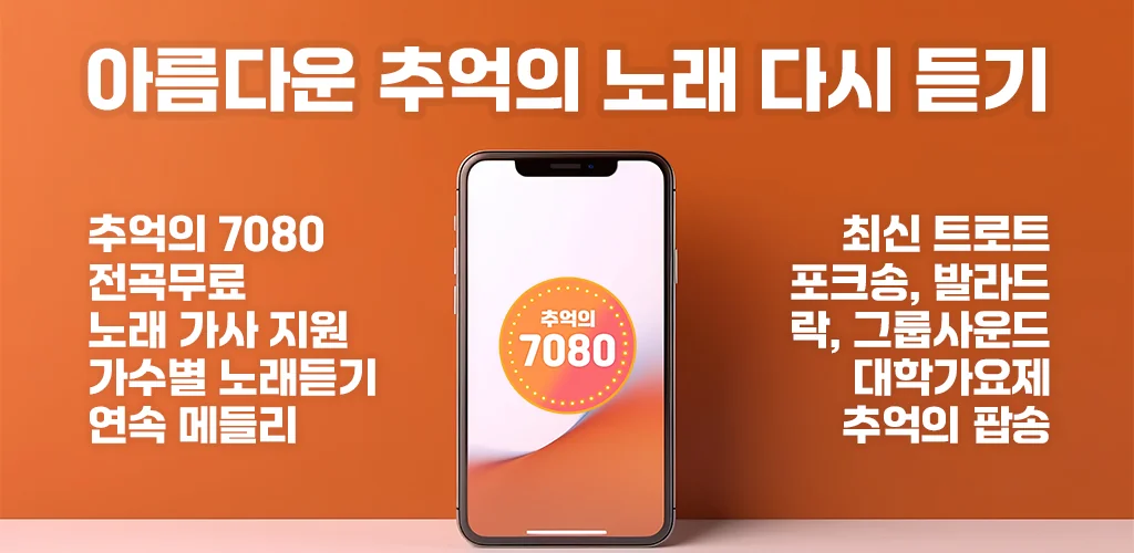 7080의 감성과 현대적인 편리함을 동시에 누릴 수 있는 음악 앱! 지금 바로 다운로드하고 나만의 음악 여행을 떠나보세요.