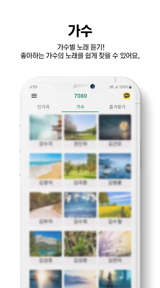 좋아하는 가수의 7080 노래를 쉽게 찾을 수 있습니다.