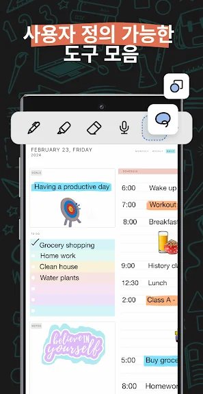 - 다양한 실감 나는 펜과 형광펜을 사용하여 아름다운 손글씨 노트를 작성하세요. 필기체에 미적인 터치를 추가할 수 있는 만년필을 사용해 보세요.