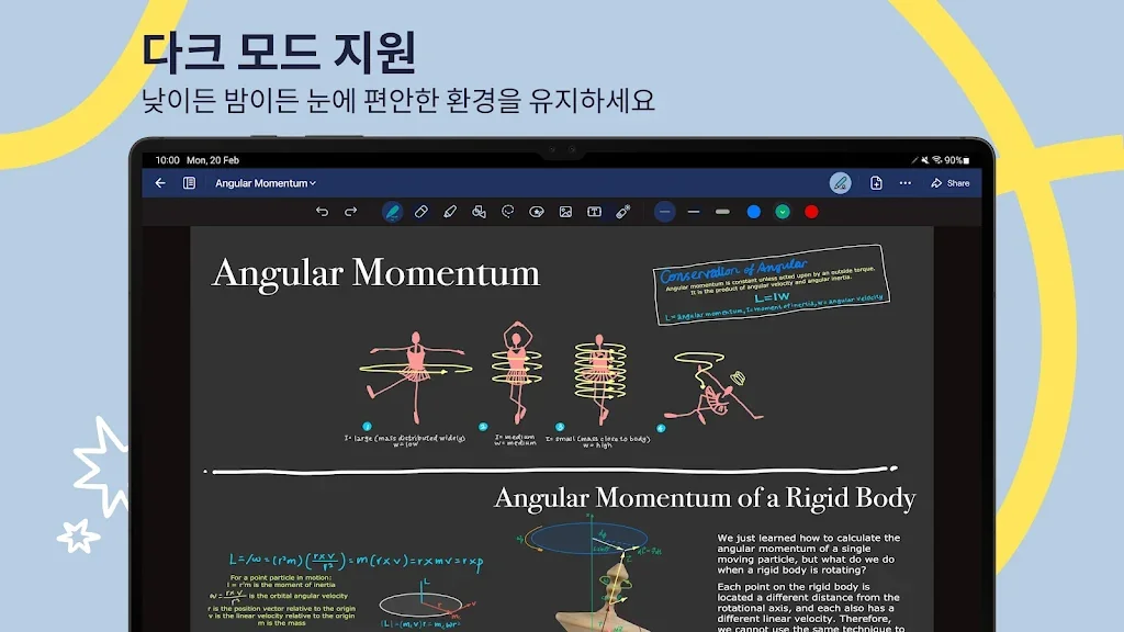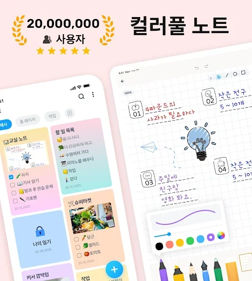 PDF에 필기하고, 노트를 정리하거나, 메모 작성, 오답 노트 정리 및 다이어리 꾸미기와 같은 다양한 일상의 문서 작업들을 손쉽게 지원합니다.