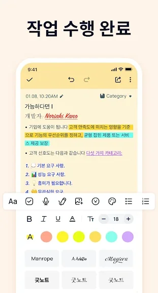 글꼴, 색상, 서식 옵션을 사용하여 메모를 사용자 정의하세요.