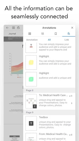 PDF에 주석을 추가하고, 텍스트 또는 이미지를 노트에 스크랩하는 모든 액션에 대해 하이퍼링크로 연결됩니다.