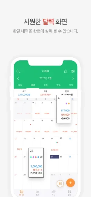 매일 수입과 지출 그리고 가계부 상태를 한 눈에 알 수 있습니다.