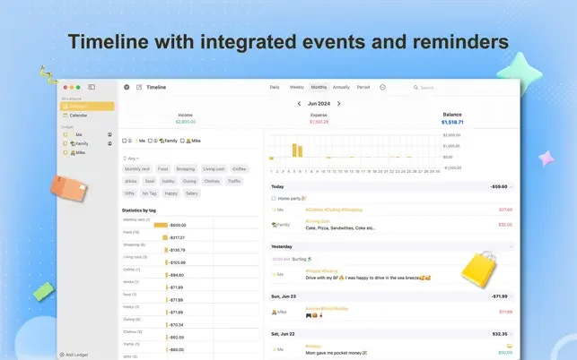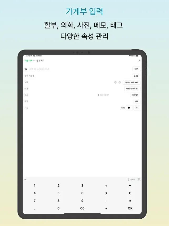 - 태그: 지출을 손쉽게 카테고리화하세요.