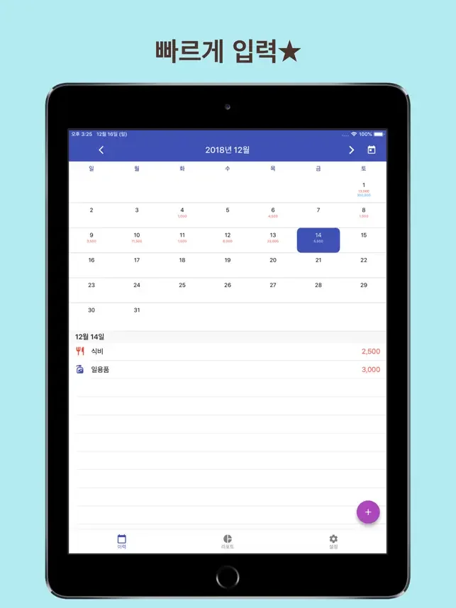 *사용이 간편하고, 빠른 가계부 기록