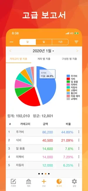 간단하고보기 쉬운 입력 화면에서 지출과 수익을 입력하면 자동으로 일정이나 보고서를 만들어줍니다. 가계 지출 관리 · 변통을 간단히 파악할 수 있습니다.