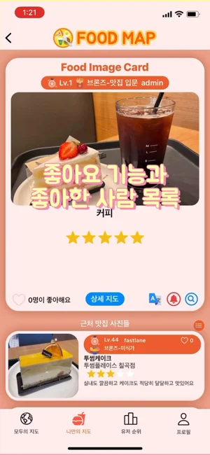 즐겨찾기 기능을 통해 나만의 맛집지도를 완성해보세요