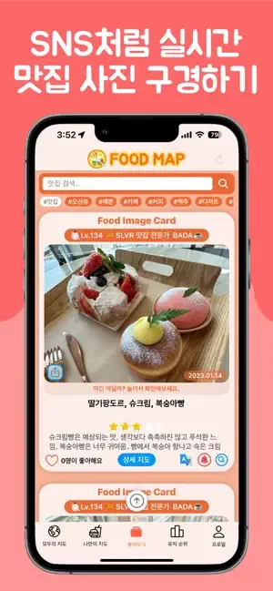 위치기반 시스템으로 업로드되기 때문에 유저가 직접 방문한 맛집 사진들이 올라옵니다. 광고 없는 '내돈내산' 맛집 어플입니다.