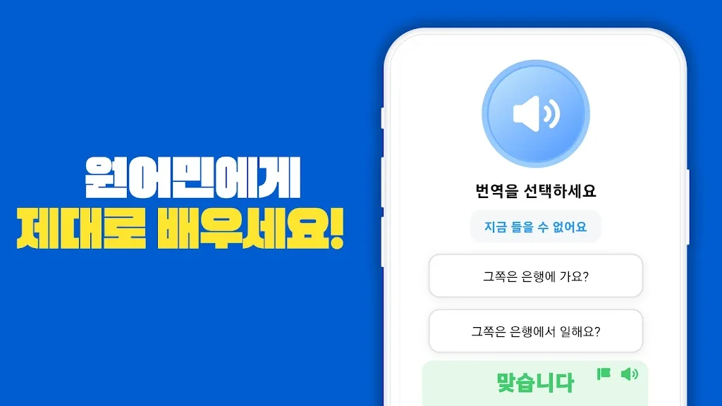 무료로 제공되는 수많은 단어장을 단어마다 직접 음성으로 설명해주고 반복해주니까 앱을 켜 놓기만 해도 단어가 저절로 외워집니다. 로그인 없이 바로 공부할 수 있는 암기고래에서 단어 공부를 시작해 보세요.