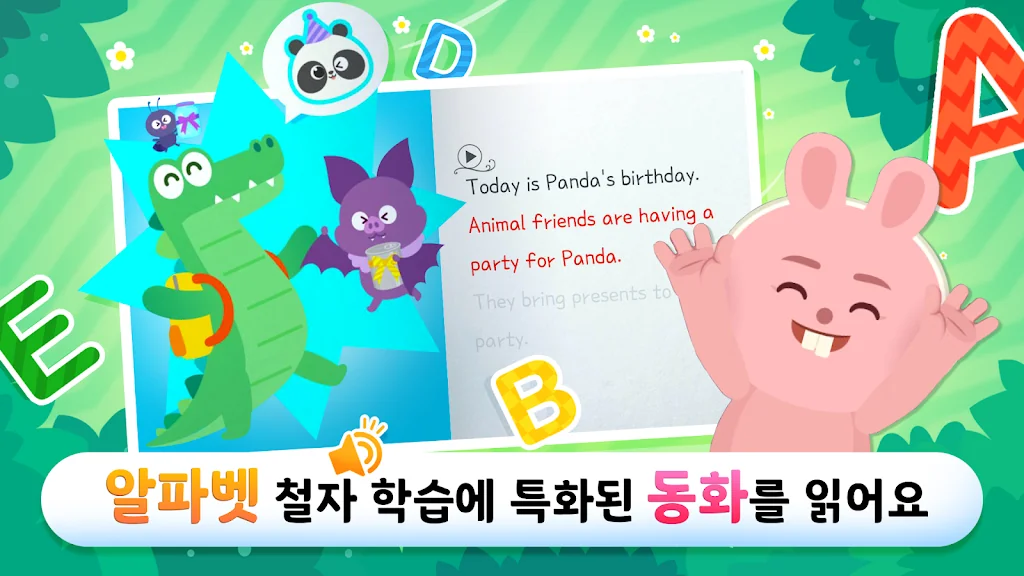 5세부터 10세 유아, 어린이 그리고 초등학생까지 애니메이션과 게임을 통해 스스로 재미있게 영어를 터득하고 파닉스 및 두뇌 능력을 향상시킬 수 있는 플레이러닝앱니다.