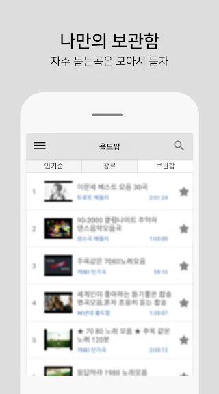 좋아하시는 곡은 보관함에 담아두고 편하게 들을 수 있습니다.