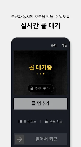 아래는 카카오 T 택시 기사용 어플에 대한 스크린샷 정보입니다.