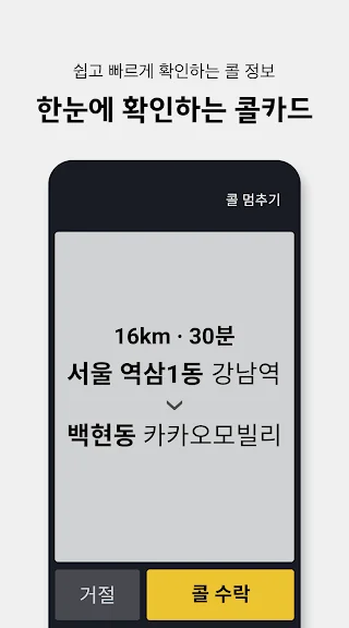 아래는 카카오 T 택시 기사용 어플에 대한 스크린샷 정보입니다.