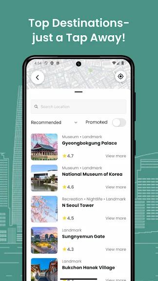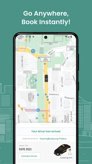 쉽게 한국을 탐험해보세요: 최고의 명소, 식사, 쇼핑 장소를 찾아보세요. 탭 한 번으로 차량을 예약할 수 있습니다!